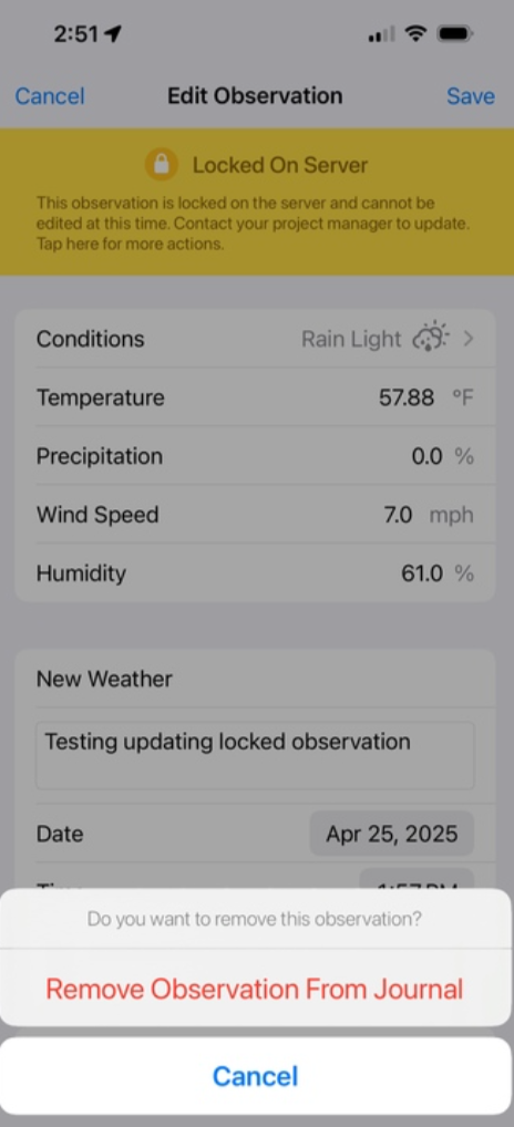 Fast Capture now provides clearer feedback and better controls when an observation can’t be saved because it was locked or deleted on the server.